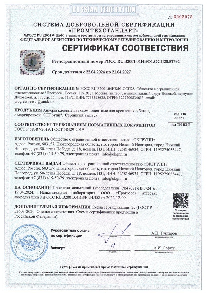 Двухкомпонентный химический анкер на основе эпоксидной смолы ТЕ 100